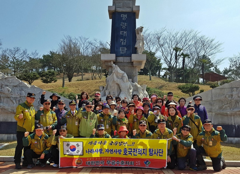대한민국무공수훈자회 부산지부 회원 · 가족 40여명은 년간계획에 의거 4월8일 전남 해남 우수영의 "명랑대첩비"를 참배하고 420여 년전 정유왜란시 위기의 조국을 구하기 위하여 왜적과 싸우다장렬히 순국하신 호국전몰영령을 추모하였읍니다. 일행은 이어서 땅끝마을 · 전망대, 두륜산 대흥사, 윤선도유적 등 인근 문화유산들을 탐사하는 바쁜 하루일정을 가졌습니다. 참여하신 회원·가족들과 하루종일 열정적으로 안내 해설하여 주신 해남군의 윤선도선생 10대손 윤영애 문화관광해설사님께 다시한번 감사의 뜻을 전합니다.