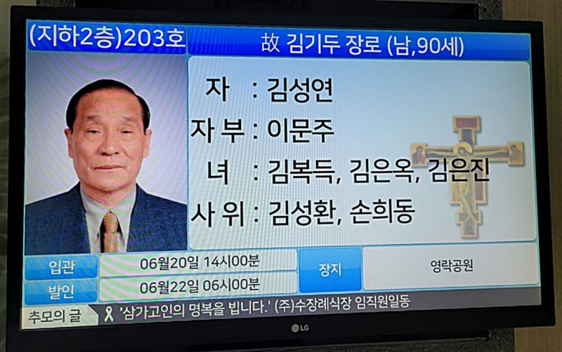 장소 : 수요양병원 장례식장 지하2층 203호실