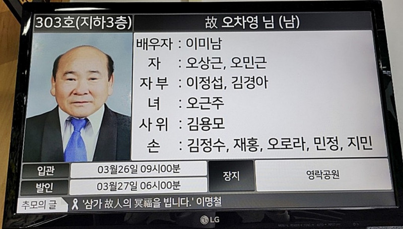 장소 : 온종합병원 장례식장 303호(지하3층)
