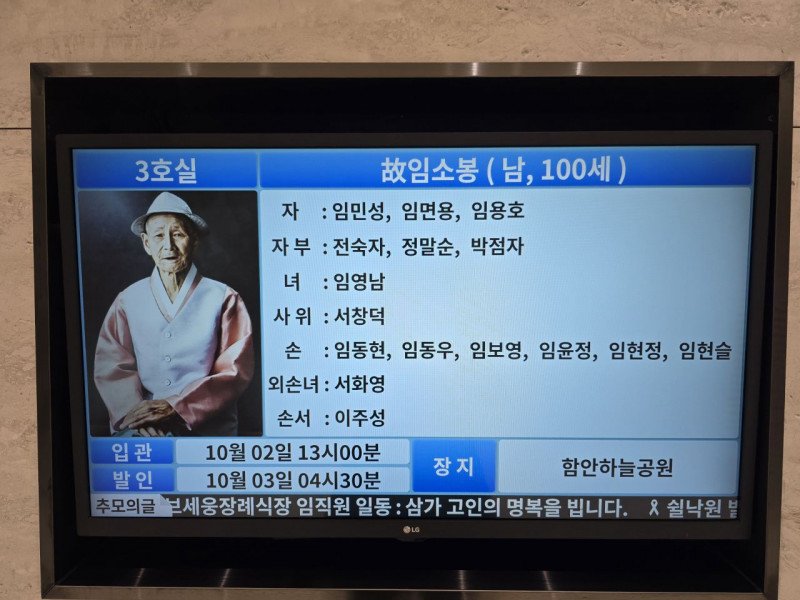 장 소 : 안락동 빌리브 세웅 실낙원 장례식장 3호실