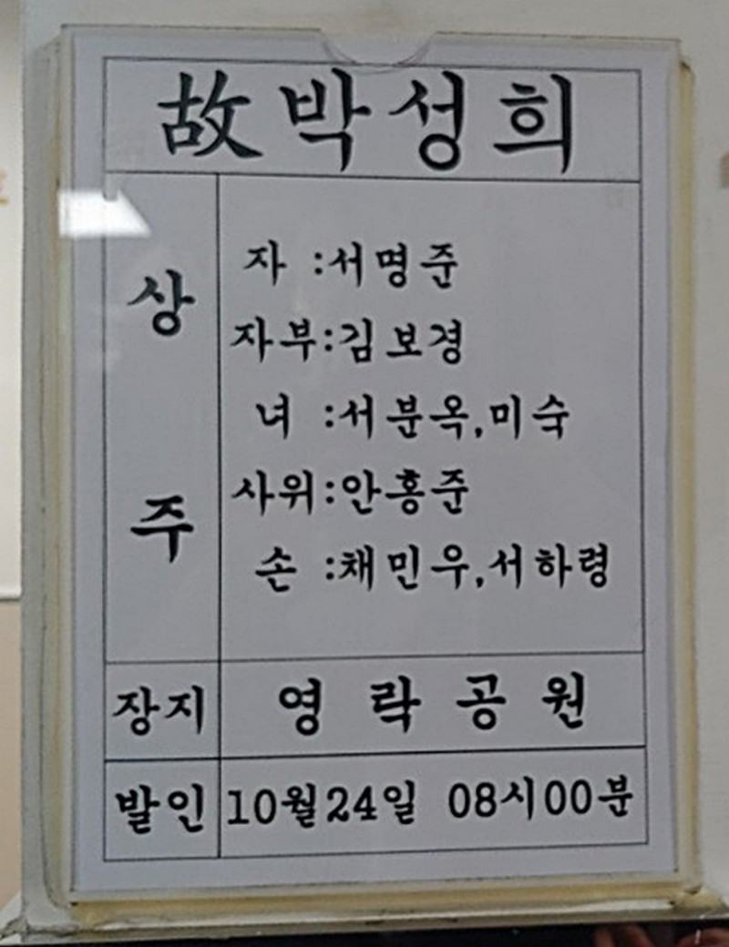 장소 : 동래한서병원 장례식장 7호