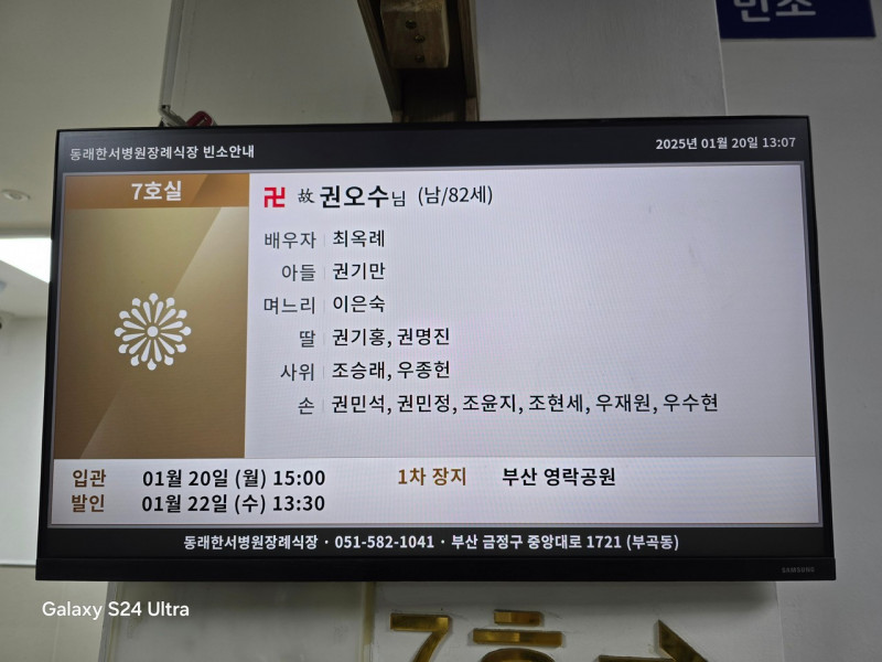 장 소 : 동래한서병원 장례식장 201호실