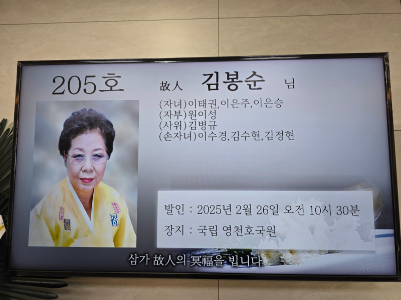 장     소 :  보훈병원 장례식장  205 호실