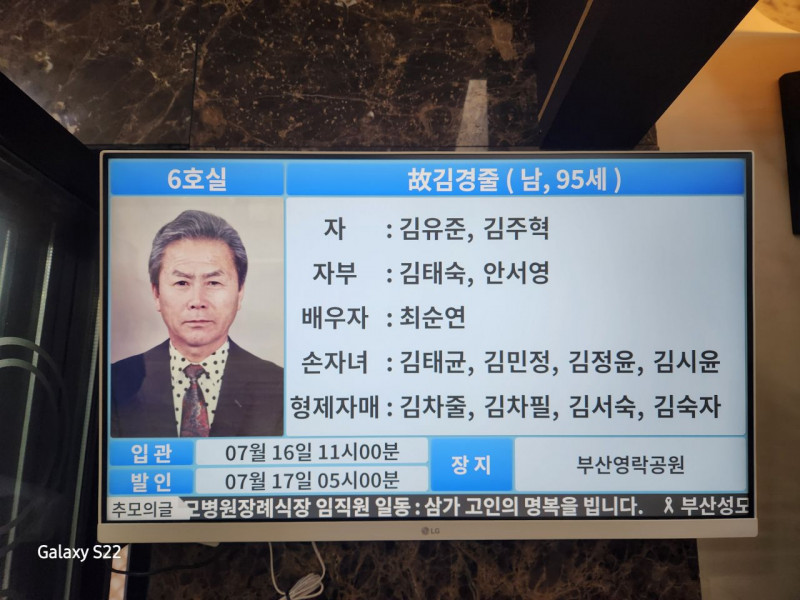 장     소 :  성모병원  장례식장   6호실