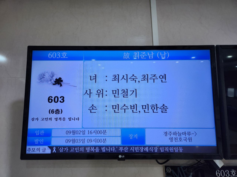 장 소 : 부산시민 장례식장 603 호실