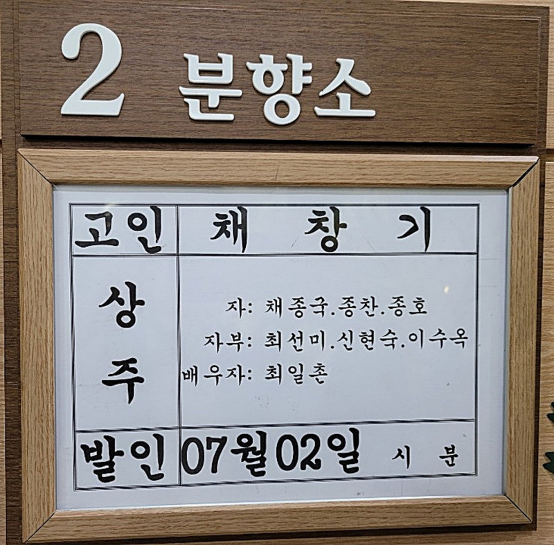 장소 : 초량봉생병원 장례식장 2분향소