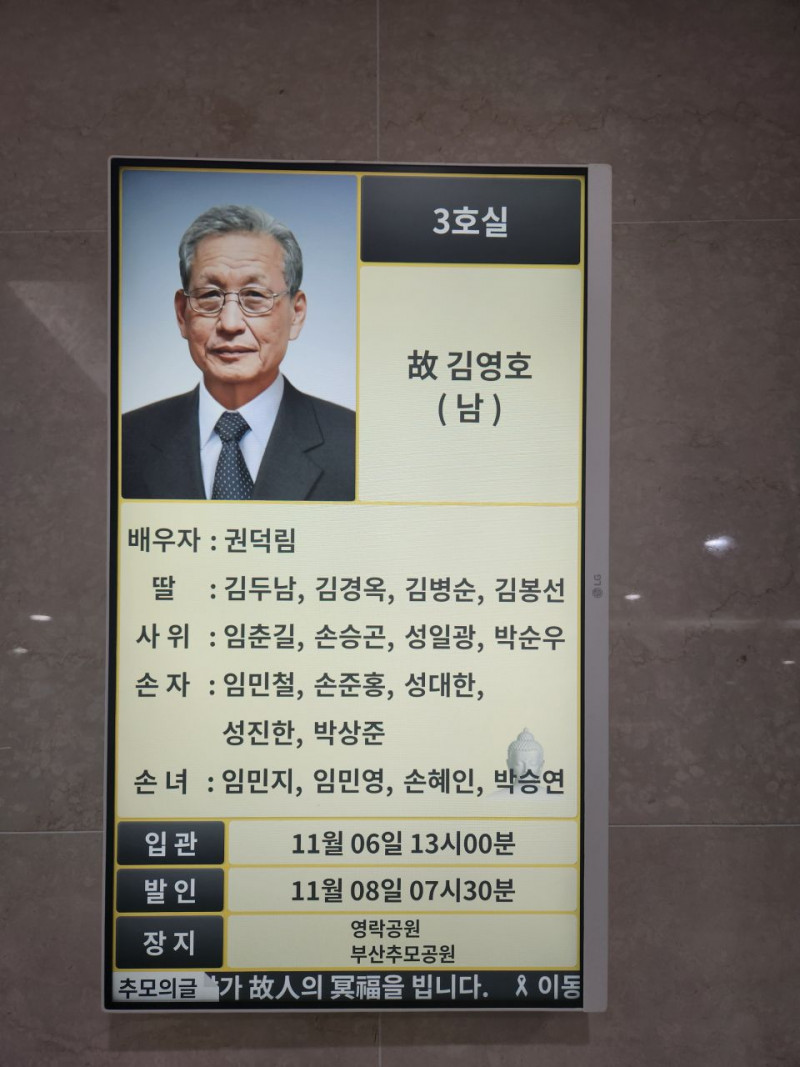장 소 : 부산 의료원 장례식장 3 호