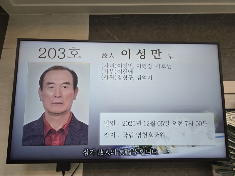 장     소 :  보훈병원  장례식장   203호