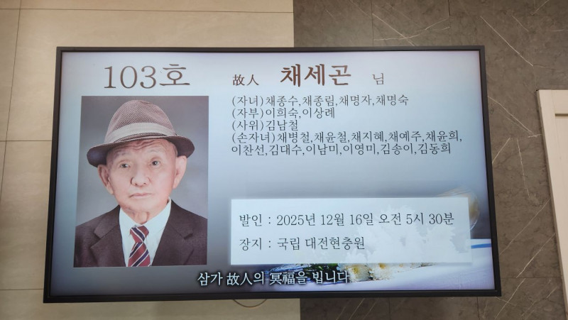 장     소 :  보훈병원  장례식장  103호실