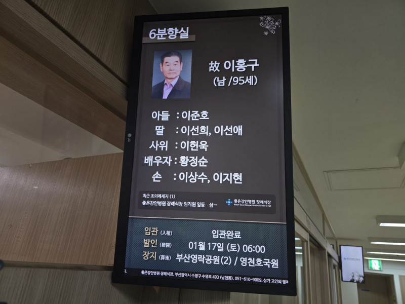 장 소 : 좋은강안병원 장례식장 6 호실