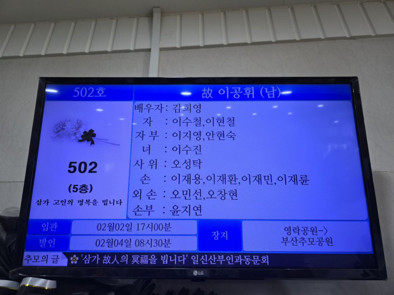장     소 :  부산시민  장례식장  502호