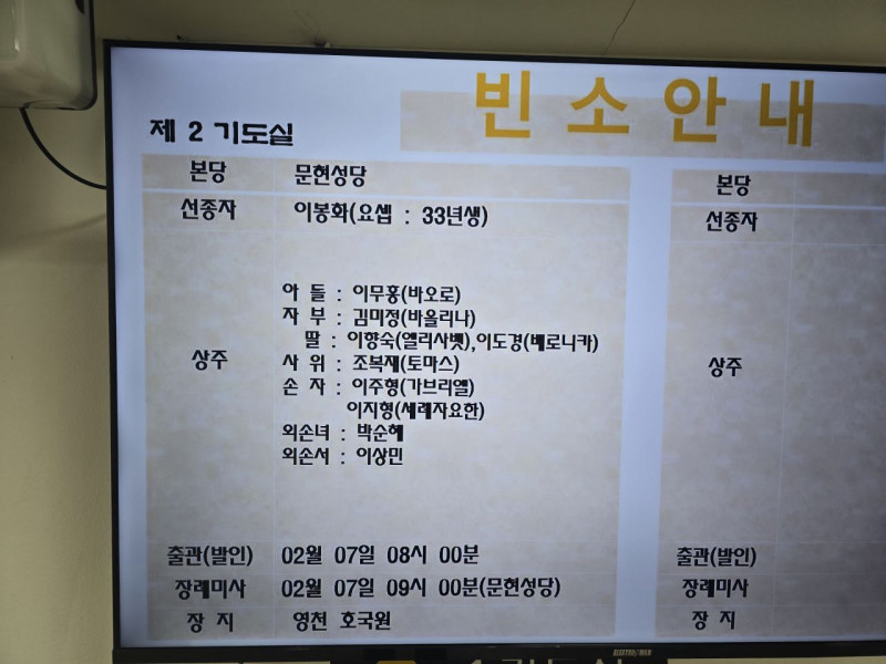 장 소 : 남천성당 장례식장 2호