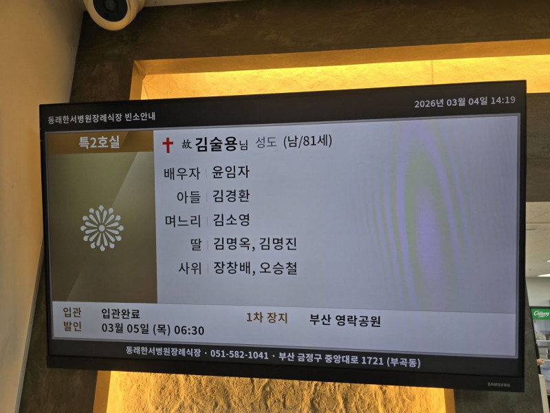 장 소 : 동래 한서요양병원 장례식장 특2호