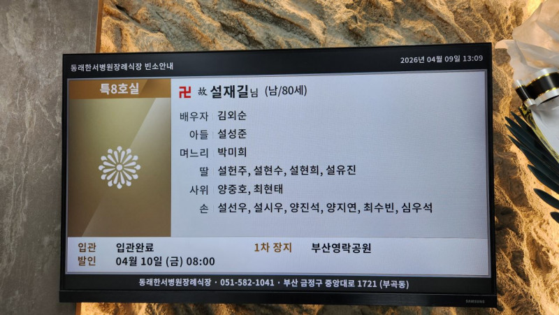 장     소 :  동래한서병원  장례식장  특8호