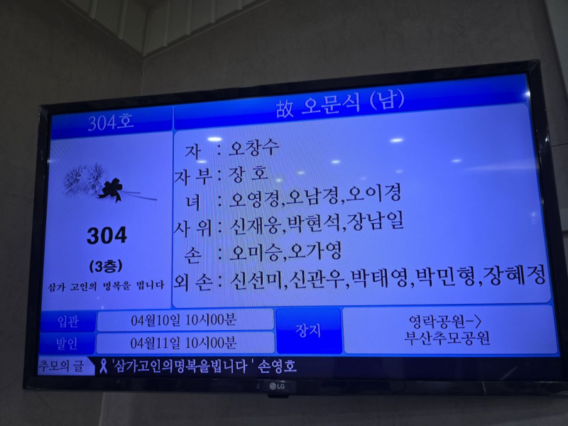 장     소 :  부산시민  장례식장  304호