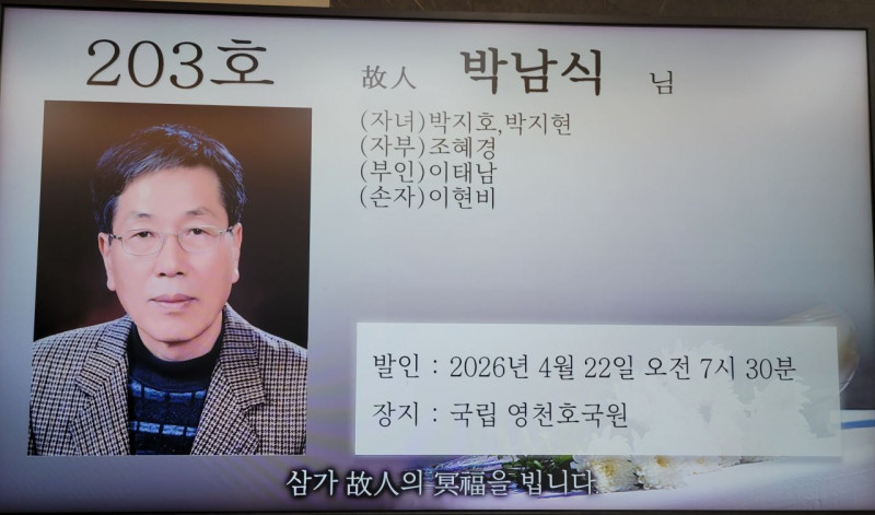 장     소 :  보훈병원  장례식장  203호