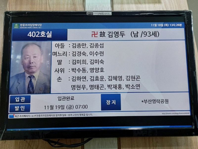 장소: 한중프라임 장례식장 402호실