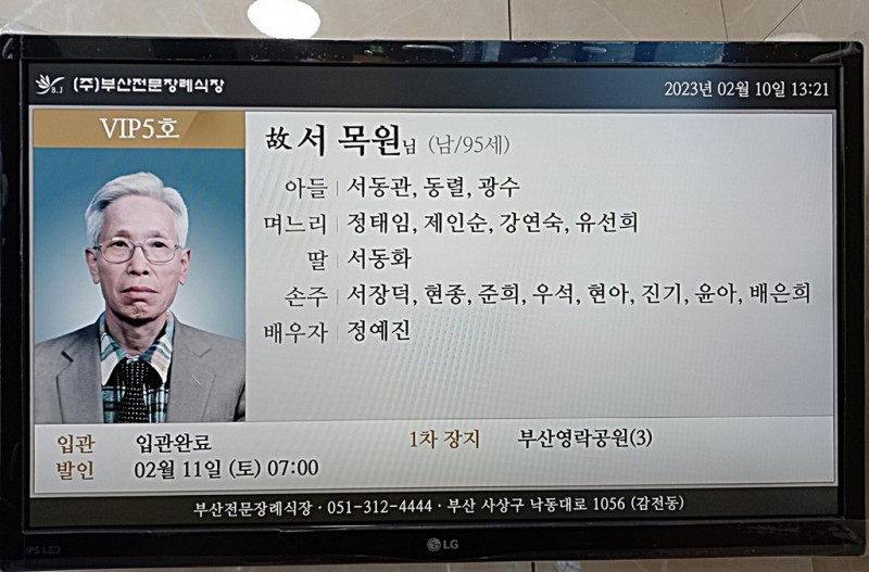 장소 : 부산전문 장례식장 VIP5호실