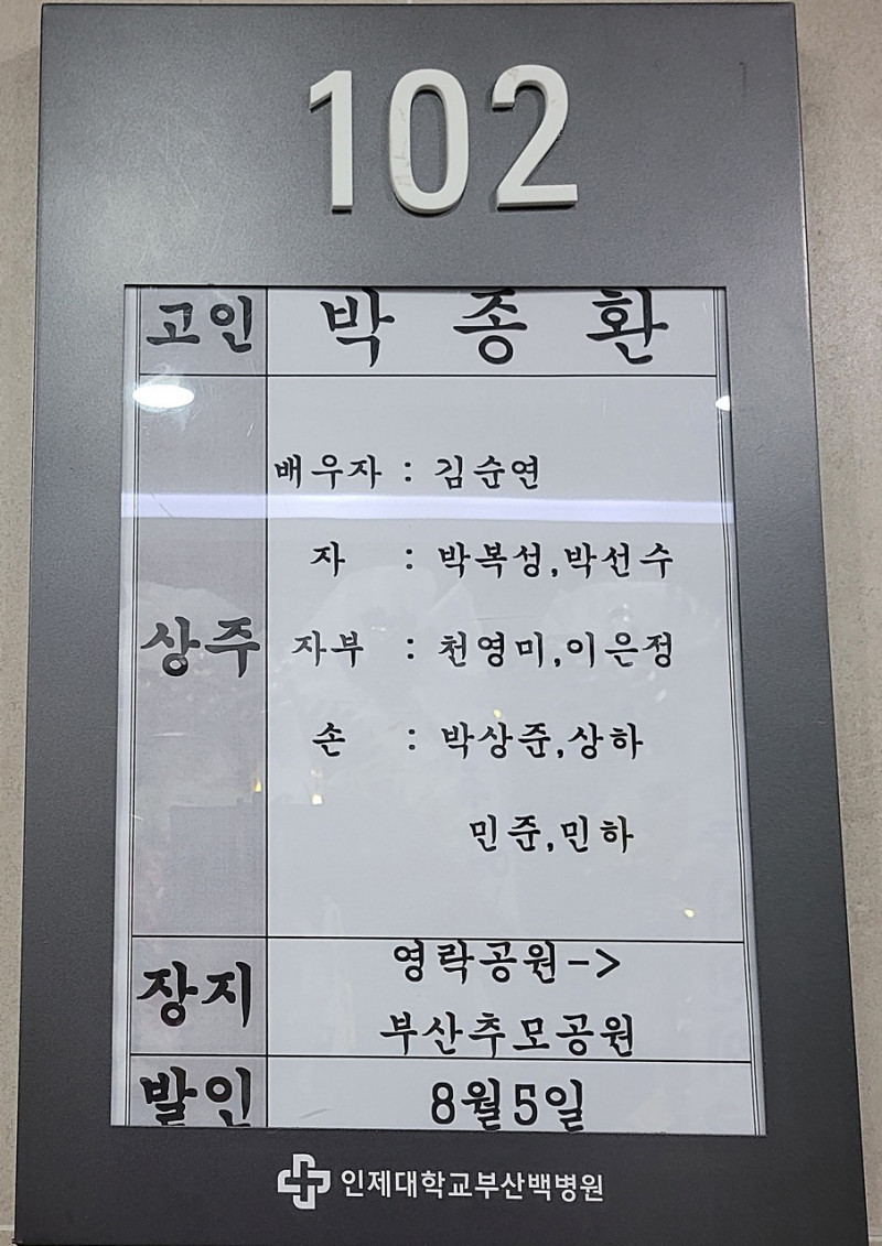 장소 : 개금백병원 장례식장 지하102호실